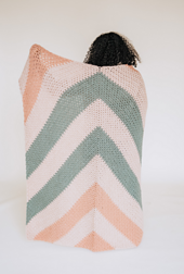 ***Snuggle under the gentle, geometric pattern of the Bradley Afghan.*** Three colors of bulky weight yarn are combined in this chevron moss stitch blanket pattern to help point the way to a cozy Netflix binge session. Grab your favorite snack and curl up under your new favorite afghan.
