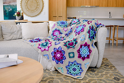 Explore and learn the wonderful world of crochet through a variety of stitches and techniques. This blanket is made up of three shapes; octagons, squares and triangles. The finished blanket measures approximately 130cm / 51 inches.