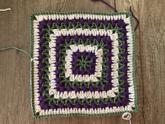 The finished dimensions are 10 x 10 ” / 25.5 x 25.5 cm after blocking.