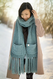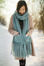Crochet this stunning beginner-friendly statement scarf using basic stitches! The cozy pockets are the perfect place to keep your hands warm, and the luxurious fringe add such a lovely touch. Choose your favorite color and stay warm and stylish with the Willow Scarf!