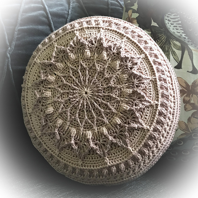 with the crochet hook, the result was a round pillow. The pattern fits really