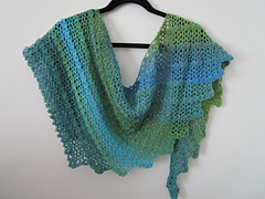 Shawl pictured measures 70in [178cm] on the longest length and 32in [82cm] on the shortest side (border) after blocking
