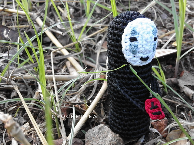 No Face amigurumi is about 9 cm (3.5 inches) tall.