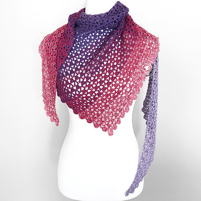 The Amore Wrap is a pretty, lacy, free crochet shawl pattern that uses just one ball of Red Heart It's A Wrap Rainbow Yarn. The open stitch pattern works up quickly and beautifully in these lovely gradient colors.