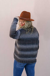 While the “wrong side” of Tunisian simple stitch really shines in this simple silhouette, the sweater is actually reversible. Wear it with the regular front side of Tunisian simple stitch facing out for more distinct stripes or choose the backside of the fabric for a look that resembles knit garter stitch.
