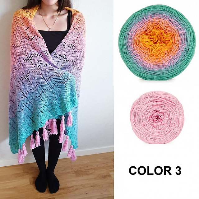 Two skeins of Twister or Sultan Deluxe in the same color are used for the project. You can choose the color you like best, but can also let yourself be inspired by the color combinations we have used. You’ll find them in the menu below as color 1, color 2, color 3, color 4 and color 5 :)
