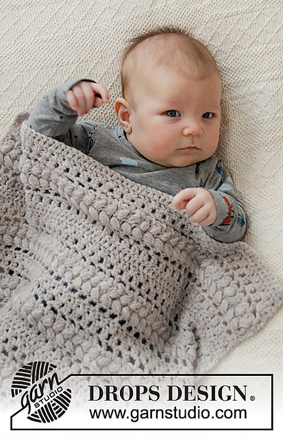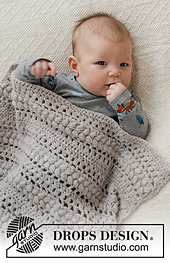 **Crocheted blanket for babies in DROPS Sky. The piece is worked with lace pattern, texture and puff-stitches.**