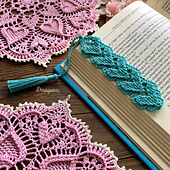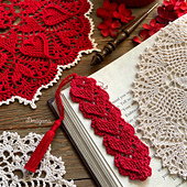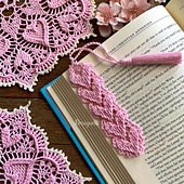 This bookmark has 22 rows and measures about 5”. For this pattern I used the same textured hearts that are in the [Sweetheart Soiree][1] doily pattern, but instead of working in rounds they are worked in rows.