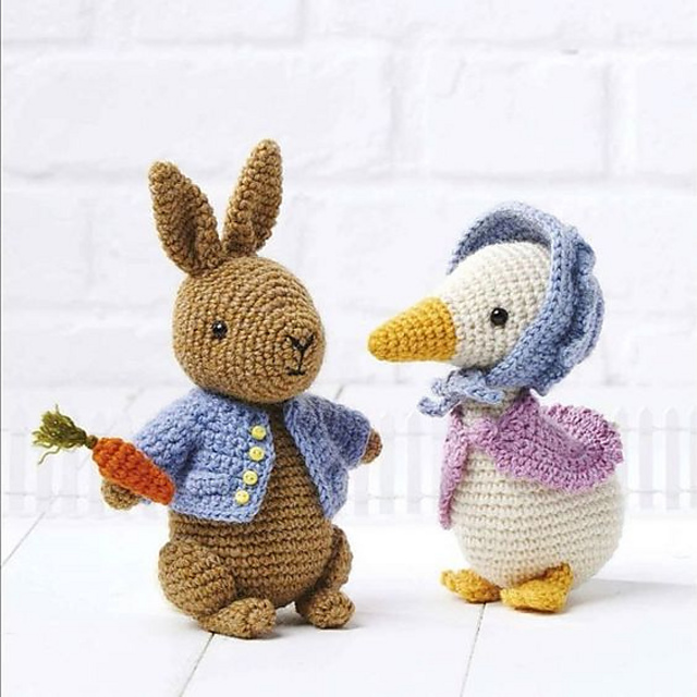 Jemima Puddle-Duck is made in the amigurumi method, working in a continuous spiral without closing off each round with a ss.