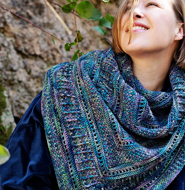 Botanika is a classic triangular shawl worked from the top center back to the edge and is easily adjustable.
