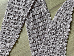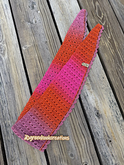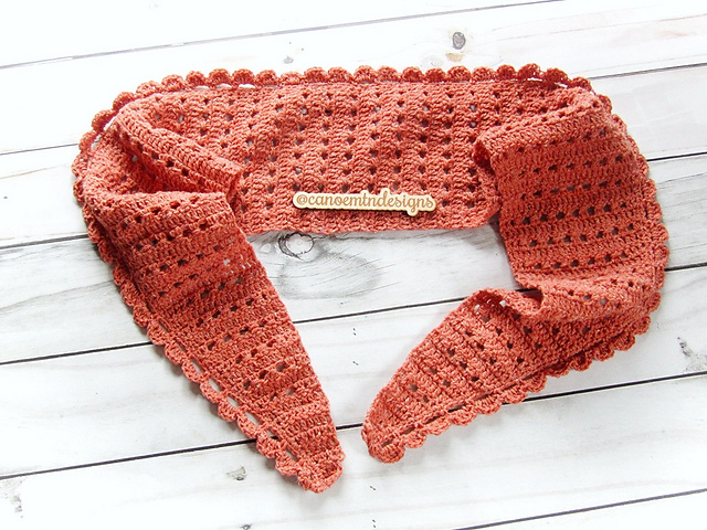 The Down Under Scarf is a lacy asymmetrical scarf pattern. Very pretty stitch pattern with an easy row repeat.