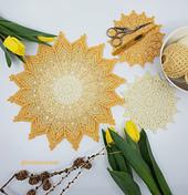 This pattern consists of two pattern in one. The first rows are the same for both the coaster and a mandala.
