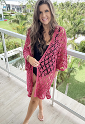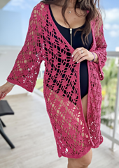 The Sun-Kissed Cardigan is a beautifully versatile piece for Spring/Summer. Easy construction is worked in three pieces from the bottom up. A gorgeous shell stitch pattern is worked throughout. Wear it as a loose cardigan or use it as a beach coverup. This lacy, feminine design is made in Knit Picks / WeCrochet CotLin. Shown in Cerise. Video tutorial included.