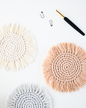 Elevate your summer DIY home décor with these easy boho crochet coasters! Crocheted using 2 strands of cotton yarn held together in a simple spiral construction, you can whip up these coasters in no time! The unravelled fringe adds a fun boho feel that perfectly complements a warm mug of tea or a fruity, summery drink!
