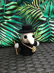 Given the circumstances we find ourselves in this year (2020), I decided to create this little guy in a fit of gallows humour. Also because I can't trust the ads I see on social media selling items like really cute plague doctor plushies; most of them are scams and I'm a bit ashamed to say I've been stung before. So when we can't buy what we want, we make it ourselves. It's what crafters do.