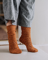 The Poet socks are knitted from the cuff down towards the toes. They are started with an optional tubular cast on which provides a stretchy edge to the cuff. The heel flaps are knitted with a reinforced stitch pattern for durability and the heels are round French heels. Instructions are given for modifying the gusset for a more generous fit.