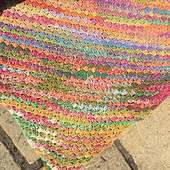 Using an easy invisible yarn joining technique, hundreds of little scraps can be joined to make a giant continuous ball of yarn, in a fun rainbow of colours then crocheted together with no ends to weave in later.