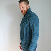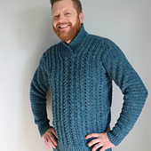 Stay cozy and modern in our mens cabled pullover. Front and back post stitches are used to create a beautiful cable that looks knit. Sweater is worked from the bottom up in pieces and seamed together. Pattern comes in S to 5X. Pattern includes a video tutorial. Designed in Sugar Bush Yarns Shanty.