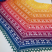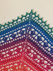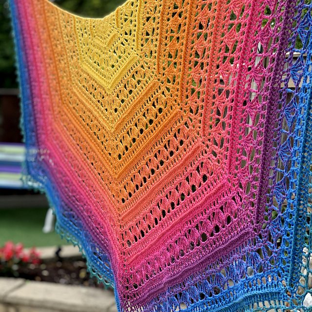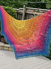 A textured lace pattern in blended rainbow shades combine to make the perfect feel good, happy shawl.