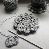 Pretty coasters, very quick and easy to make, you can probably get 8 out of a 50g ball of DK cotton.