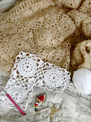 *A lacy square motif inspired by a vintage shawl handed down to me from my Nan. The squares can be combined using ‘Join As You Go’ technique to create larger pieces of fabric.*