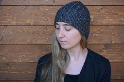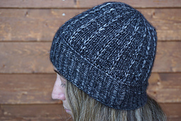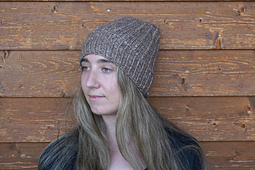 The hat is worked in the round from the bottom up and is started with a half twisted stitch ribbing. The ribbing is separated with a gorgeous vikkel braid. All over the body and crown of the hat growing lines of slipped stitches are placed on a background of easy stockinette. The hat can be worn fitted (black sample) or more slouchy (brown sample). It uses only one skein (50g) of Illimani Amelie yarn.