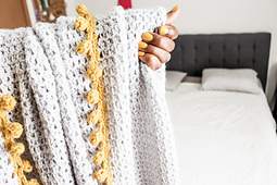 Minimalist meets modern in the Bright Side Blanket. Lightly textured mesh stitches make up the body of this throw blanket and are framed by a playful bobble border in a contrasting shade. Make one for every room in your home that needs a subtle punch of color.
