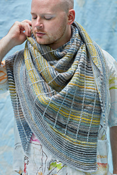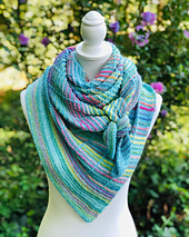 *This triangular shawl is knit sideways starting with a tiny corner increasing to the border. Stripes and slipped stitches decorate the linear lines of the fabric. One solid yarn combined with one self-striping yarn produce an exciting project that’s easy to knit and fascinating to watch the colors unfold. This pattern is a great beginner shawl project with simple stitches. You can stop early for a smaller shawl or knit more repeats for a larger shawl.*