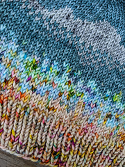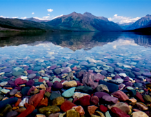 Of the 700+ lakes found within the forests and mountains of Glacier National Park, the colorful stones lining the shore of beautiful Lake McDonald make it one of the most photographed. This beanie uses subdued colors and smooth stitches to capture the serenity of the scene from colorful pebbles on the shore and in shallow water, to the deeper blue of the lake, mountain reflection, mountains, and sky…resulting in an overall sense of tranquility.