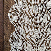 This table runner has 28 rounds and has 51 rows on each side. It measures 38" L x 11 1/2" W. The widest area in the center measures about 14 1/2".