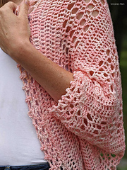 The Daphne Cocoon Cardigan Crochet Pattern is a lightweight summer design using fingering weight yarn. This cardigan features a filet crochet type body with a simple picot edging.