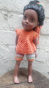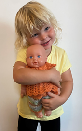 A cute little crochet set for a 10/12" baby doll, made in simple crochet stitches using UK terms