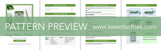 **Free pattern**: https://www.sweetsofties.com/2020/08/sage-phone-pouch.html