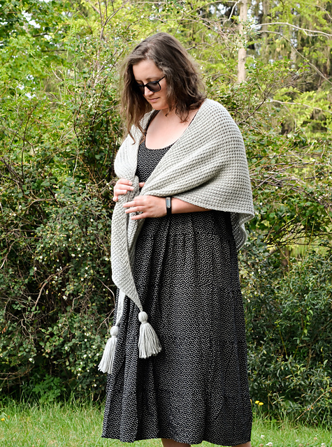 The shawl grows from a few stitches into a beautiful rounded triangle that will sit happily on your shoulders. You can tie it at the back and wear it as a wrap or wear it as a triangle scarf.