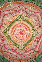 Scheepjes Colour Crafter: Your swatch should measure 10cm/4" after R5. The final blanket should measure approx. 145-150cm (58-60″) square after blocking.