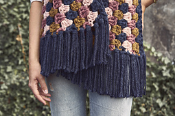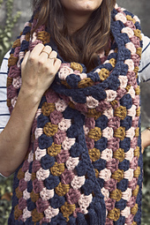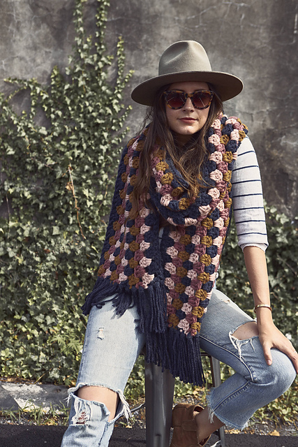 Conquer the chilliest of temps and bundle up with this bold super scarf, or simply drape it over the shoulders as an extra layer. Easy, quick, and repetitive granny clusters become addicting in this design as you watch the colors pop with each contrasting row.