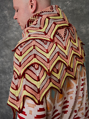*Slipstravaganza was originally released as the 11th Westknits Mystery Shawl KAL. Section 1 begins with striped honeycombs followed by picking up stitches for crisp columns. Slip stitch diamonds feature all four colors and then a small checked slip stitch pattern leads into the chevron border. Choose two skeins of fingering weight yarn for the main color with three contrast color pops.*
