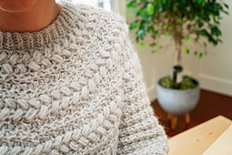Have you ever wondered what it would be like to snuggle up with a cloud? No more wondering with this soft textured sweater, it’s as cozy as it looks. The Macchiato Sweater is worked as a yoke sweater in one piece from the top down. The puff stitch rows in the yoke add a soft wreath-like detail. The stitches are reminiscent of the puffy cream in coffee a barista turns into a piece of art.