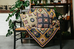 Jane designed these two cushion covers to match the Fruit Garden blanket. The Kelmscott cover matches Recipe 1, Parchment & Caramel and Melsetter matches Recipe 2, Night & Dusk.