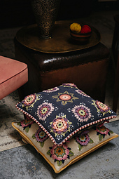 The cushions are designed so that you can use up some of the left over yarns from your CAL projects. The yarn listings below show what you will need: