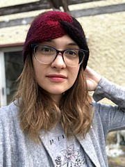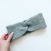 Beginner friendly Tunisian ear warmer crochet pattern. it is worked in short rows and sewn together at the end to create the twisted front.