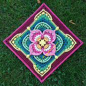 If made with DK yarn and hook size 4.5mm as my square it will measure 11 inch. With aran or worsted weight yarn and hook size 5.00mm it should measure 12 inch.