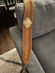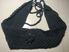 It is constructed from a square flower motif in the middle with the chevron straps going either side, finished with a 3 string fastening.