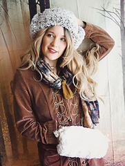 This set uses Jumbo faux fur yarn to create easy and super fun accessories that work up in just one afternoon. The Ushanka looks great with earflaps tied up or down, or leave the flaps off entirely to make a sleek fur cap. The vintage style Muff makes this an adorable matching set, and is a classic solution to keeping your hands warm without having them pinned inside your pockets!