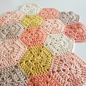 **Gauge:** Each hexagon measures about 7 cm from side to side and weighs approximately 3.6g