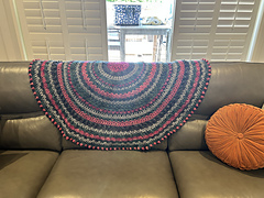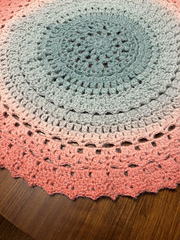 I am calling it Anniversary Mandala for my wedding anniversary this month! This is an easy mandala using one full cake of Caron Anniversary Cakes yarn – I used colorway Peach Part-ay. The yarn is a Super Bulky Weight and it has 1061/1000g in one huge squishy skein. I had fun working with this yarn and it worked up quickly using an L (8.00 mm) hook. It is 50″ across so a nice size for a lap blanket. If you use a thinner yarn it will be smaller.