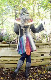 Create a prismatic rainbow robe or a shimmering mantle dark as a raven's feather with the imaginative Priestess Coat, a full-length Tunisian Crochet pattern written for six sizes (XS-2XL). Expanding on the ideas of my simpler Shaman Coat design, this all-new pattern combines the ease of construction with flattering flair using corset lacing and graceful pointed panels.