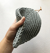The finished potholders measure 14 cm (5.5 in) at the widest point and are 22 cm (8.5 in) long.