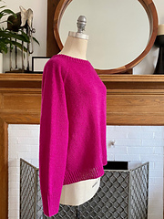 BRIGHT SIDE is a basic raglan pullover which is knit in the round from the top down and features twisted rib at the neck, cuffs, and hem. It has a boxy, slightly cropped silhouette - a shape that is easy to wear over dresses and tunics or with high-waisted skirts and pants. We opted for an ultra-bright pink but this is a wardrobe staple that will look beautiful in any colour. In fact, why not knit several to suit all the sides of your personality? And if you've never knit with rustic wool, Rauma Finull / PT2 from Norway worked at this looser gauge makes a lovely introduction to the wonderful world of minimally processed yarn.