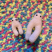 The pattern is one document with instructions to complete both the Papa and Baby Nightcrawler. They measure at about 6 inches and 3.5 inches from head to foot when using the suggested yarn weight and hook size, respectively. It requires the usual tools for amigurumi projects, however safety eyes may be substituted for embroidery thread, as you prefer.